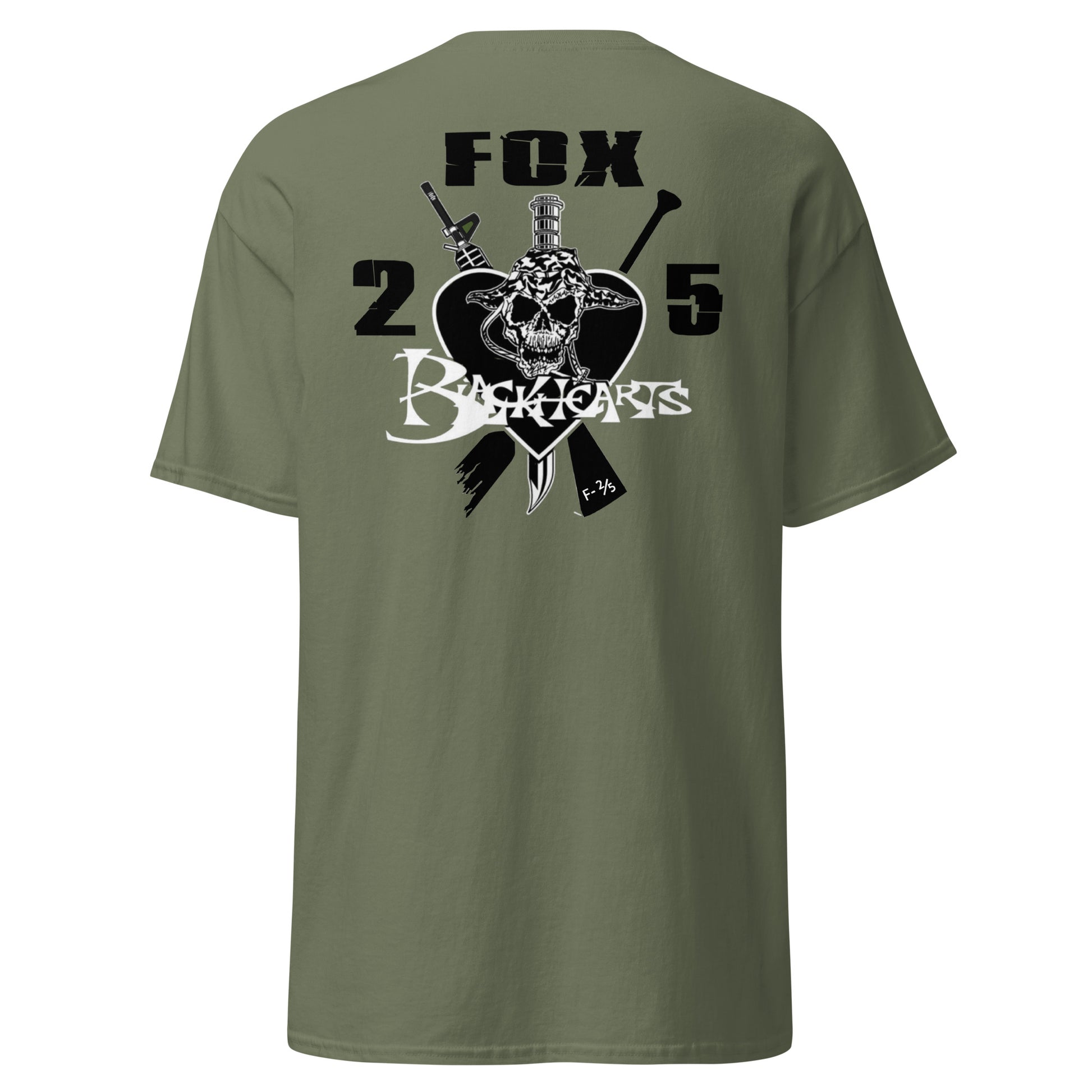 Classic OD Green skivvie shirt representing Fox Company, callsign "Blackhearts", 2d Battalion, 5th Marines.