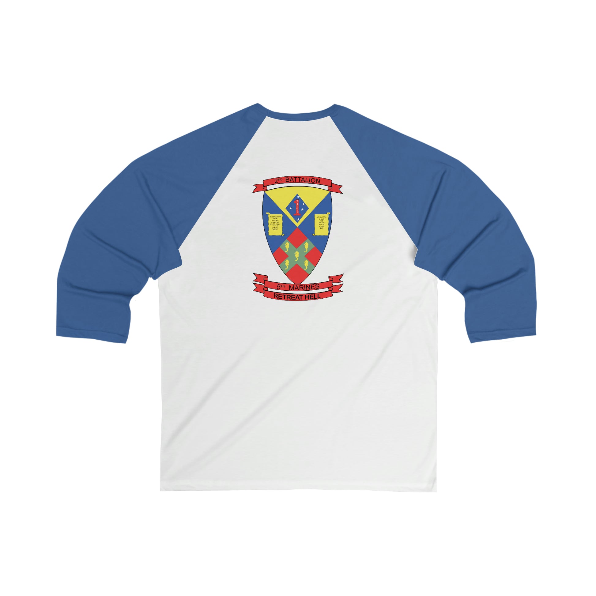 Look like you belong in America's pastime with this badass baseball tee featuring 2d Battalion, 5th Marines logo, callsign "Bloodline". Retreat, Hell!