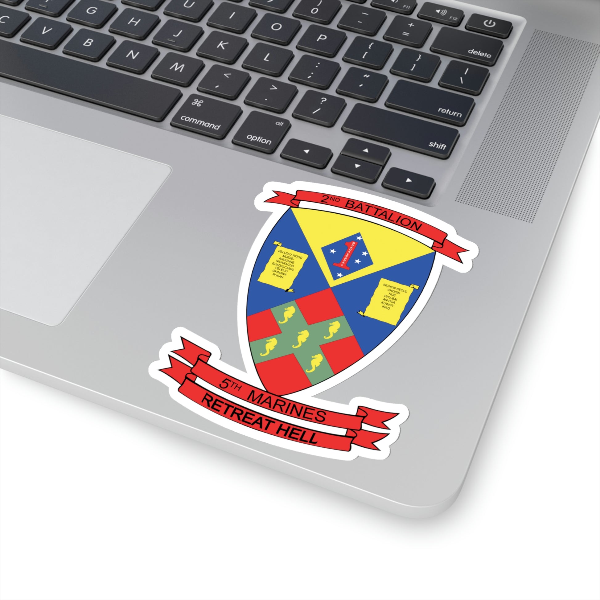 Slap your unit logo on everything you and everyone else owns! The kiss-cut method cuts the sticker into any shape you desire, while leaving the back intact so that it can be smoothly peeled off the page.