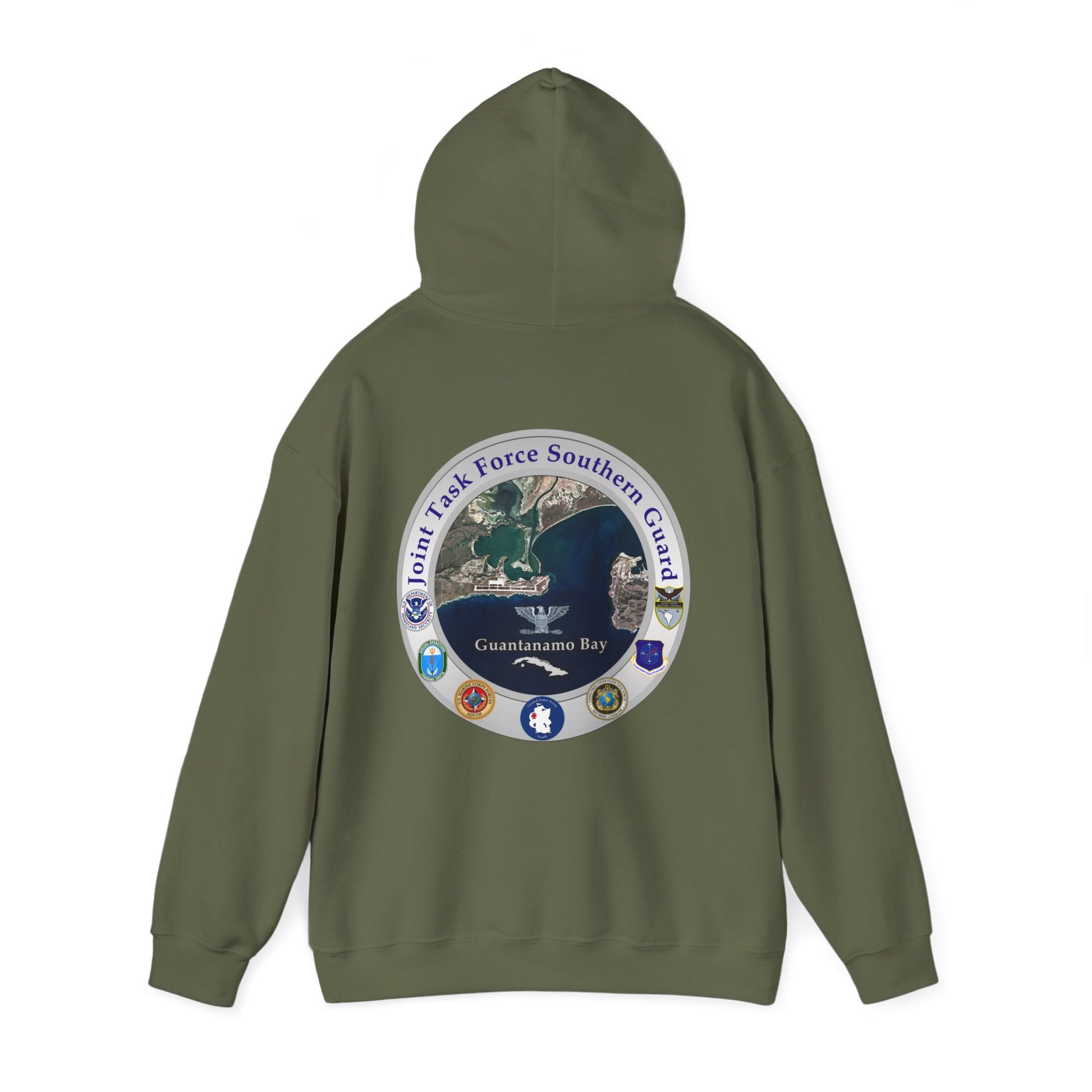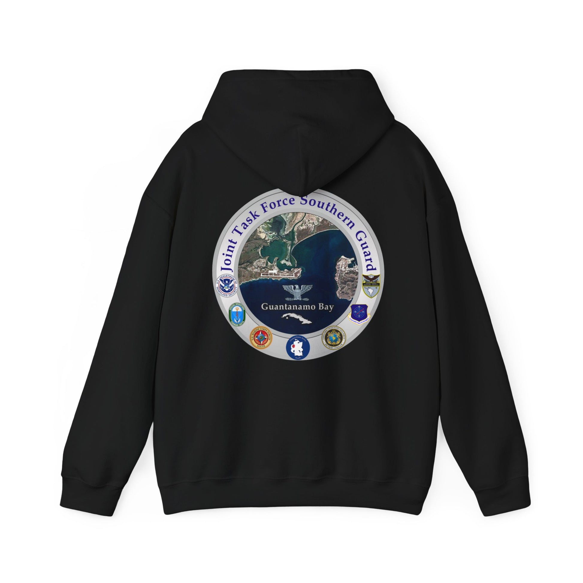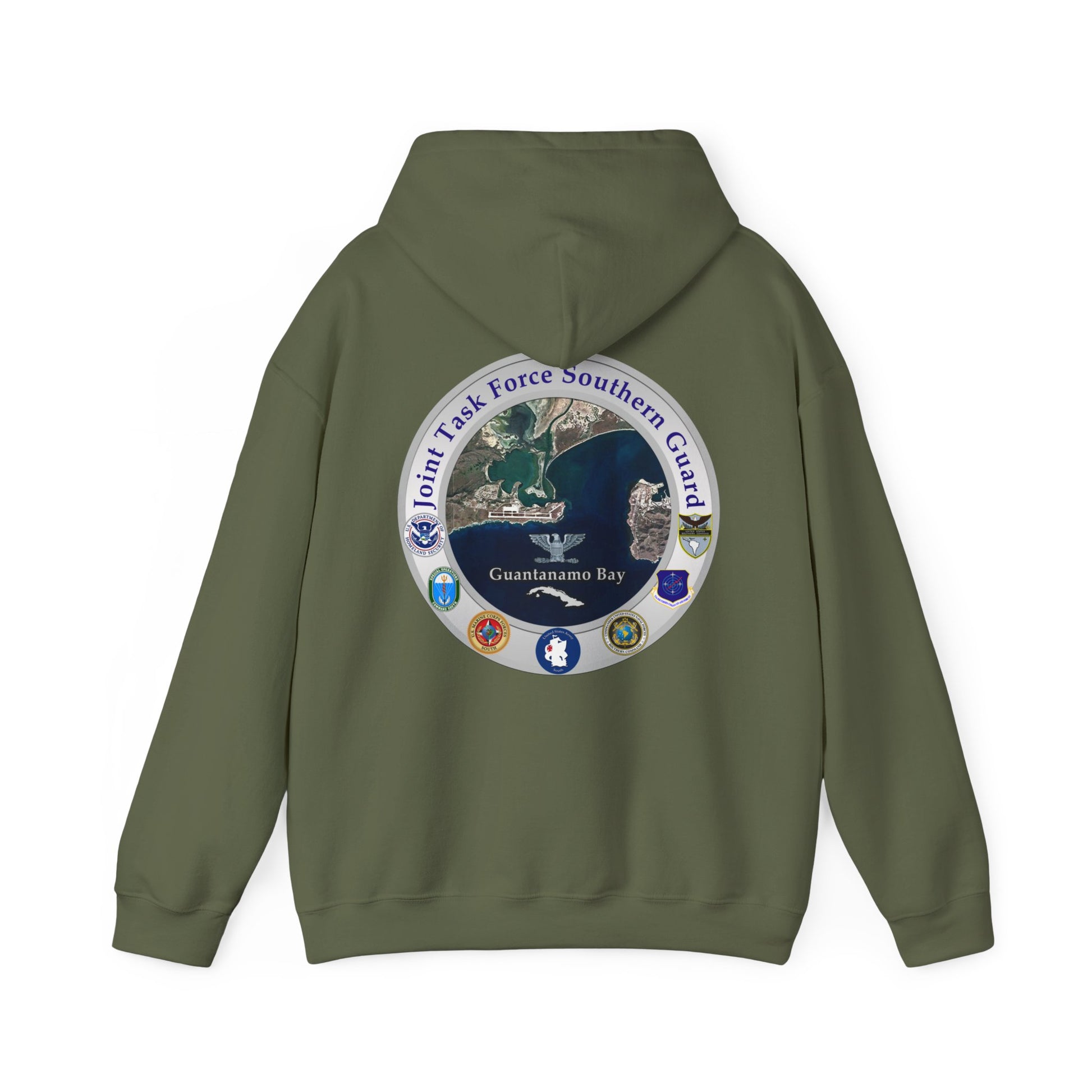 Stay warm while representing your unit with this classic hoodie that comes available in Black and Olive Drab Green. Features logo of Joint Task Force - Southern Guard.